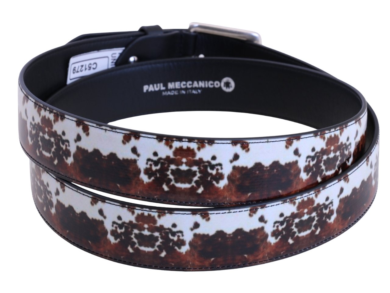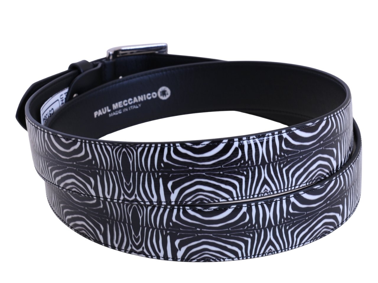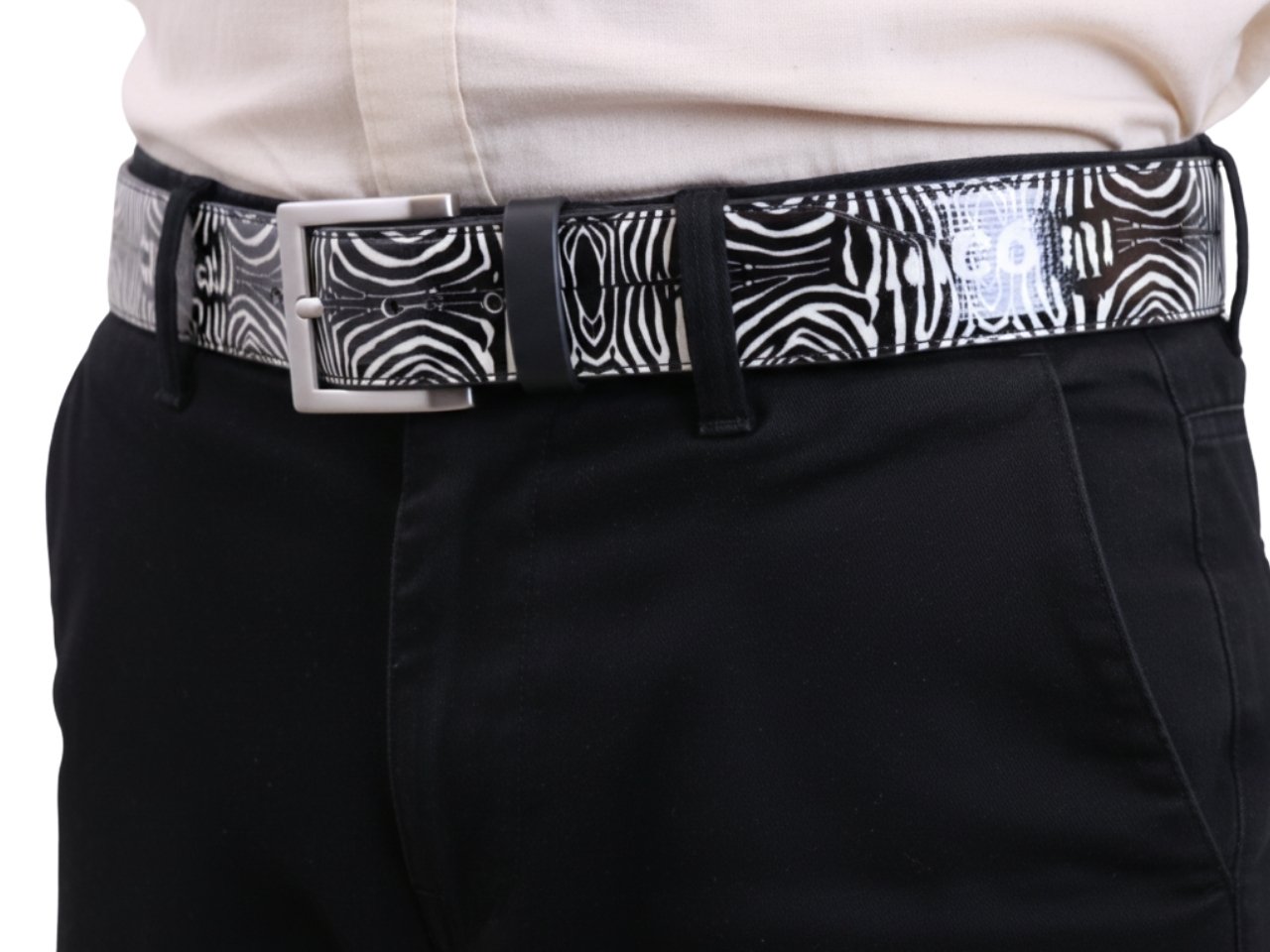 CINTURA UOMO BIANCA E NERA FANTASIA ANIMALIER REALIZZATA CON TELONI DI CAMION