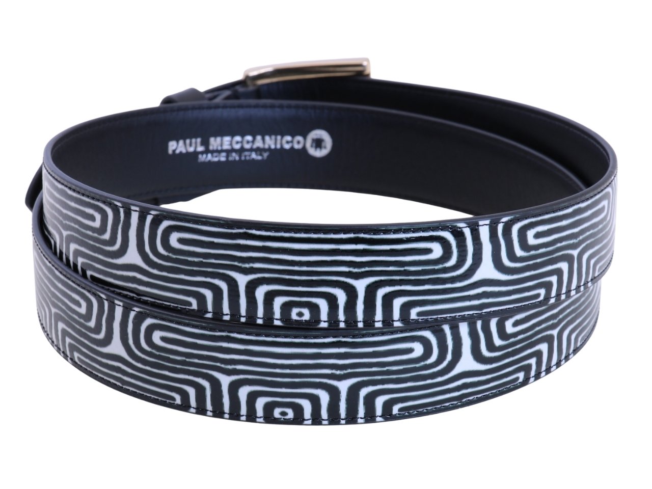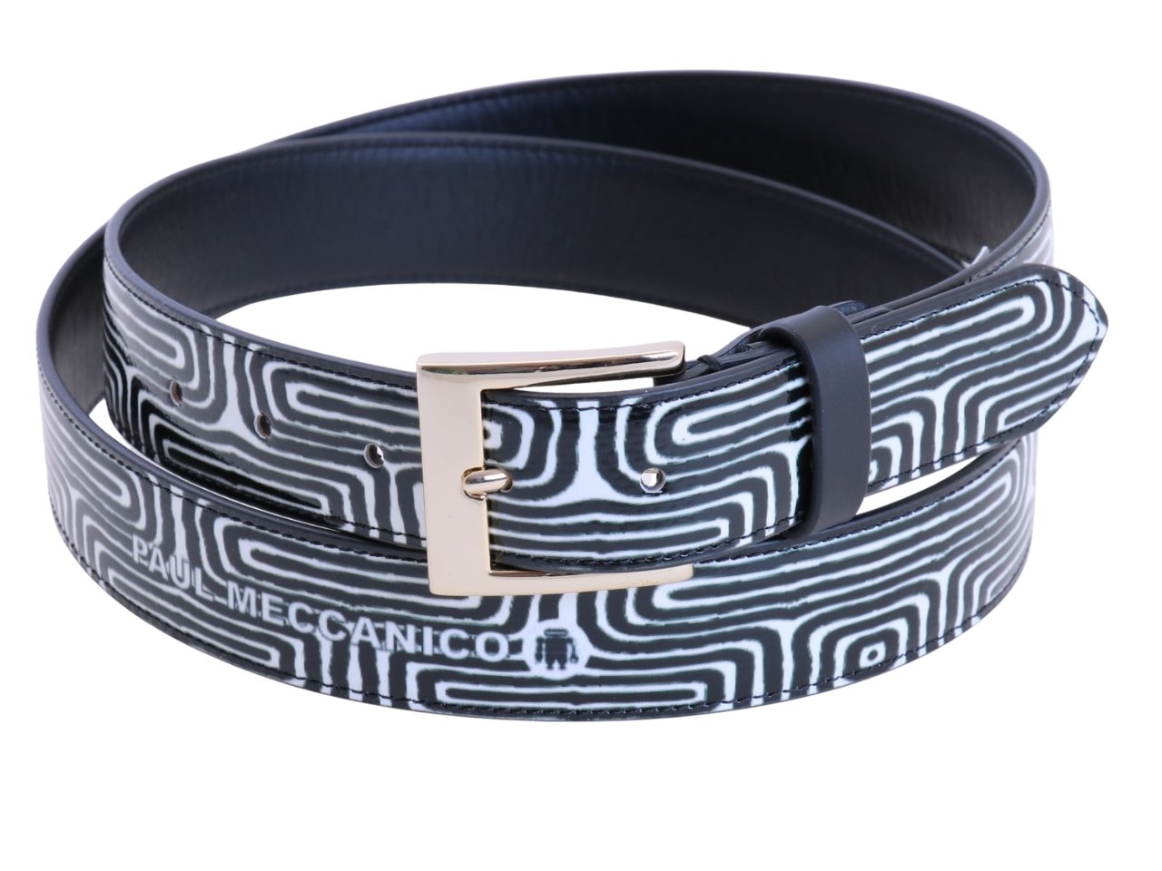 WOMAN’S BELT PAUL MECCANICO. WHITE AND RED COLOURS WITH GEOMETRIC FANTASY.