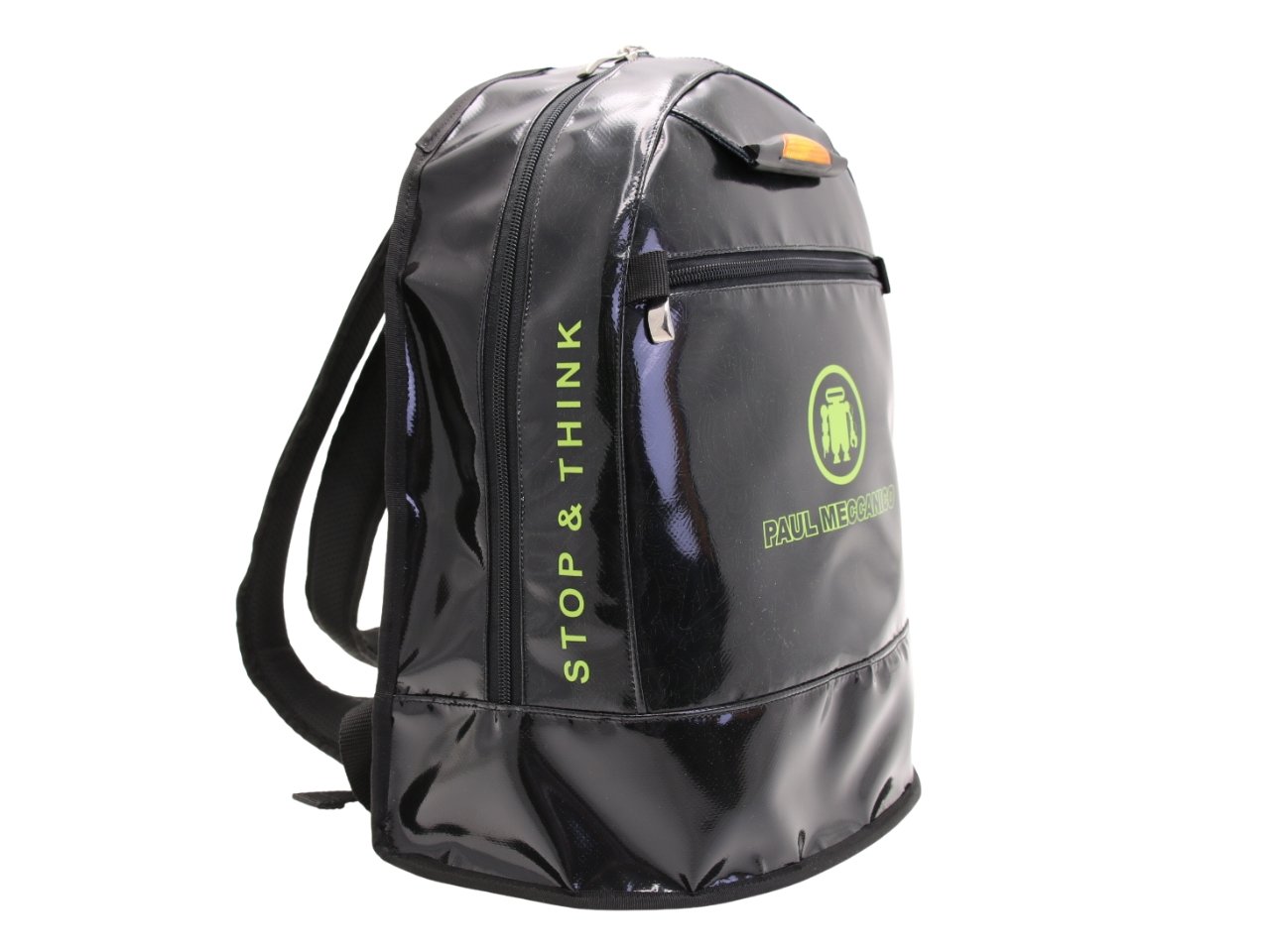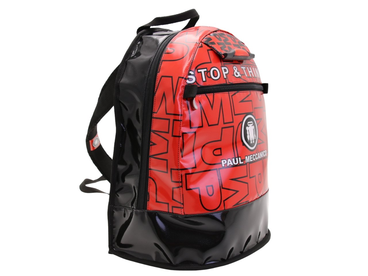 BLACK AND RED BACKPACK WITH LETTERING FANTASY. MODEL SUPER MADE OF LORRY TARPAULIN.