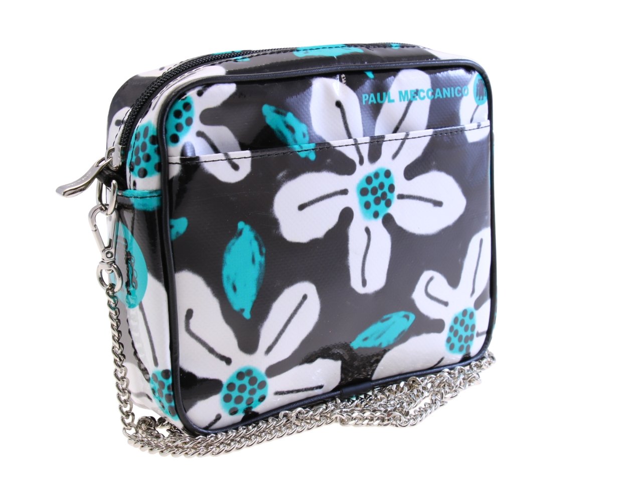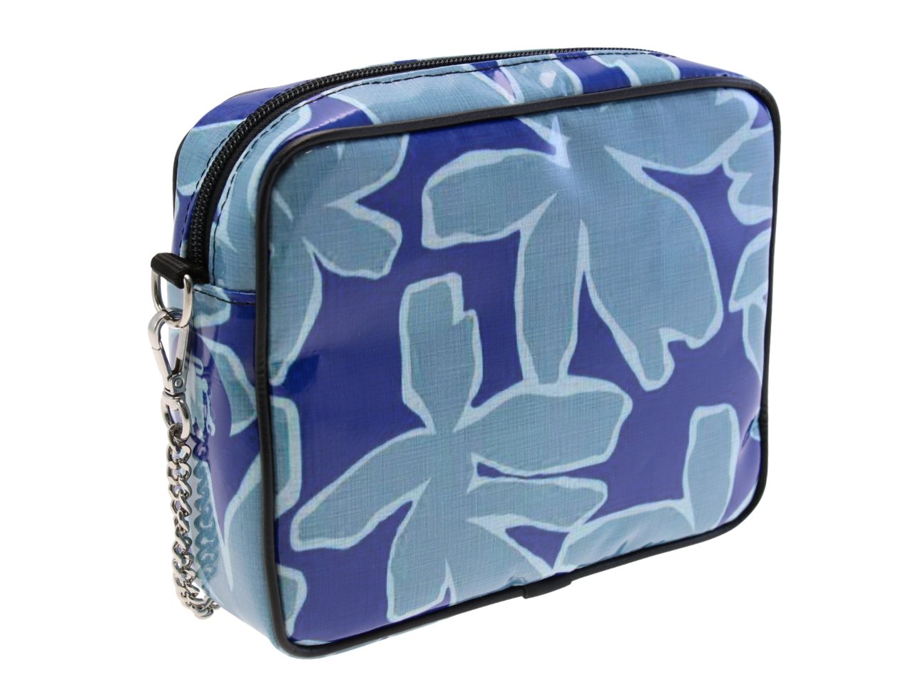 LIGHT BLUE CLUTCH WITH FLORAL FANTASY. MODEL PARK MADE OF LORRY TARPAULIN