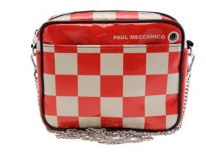 BEIGE AND RED CLUTCH WITH CHESS FANTASY. MODEL PARK MADE OF LORRY TARPAULIN