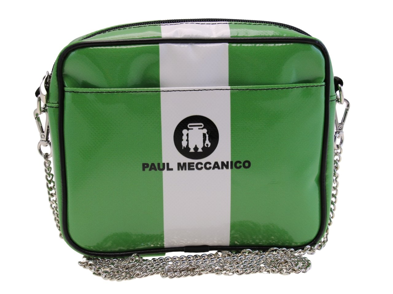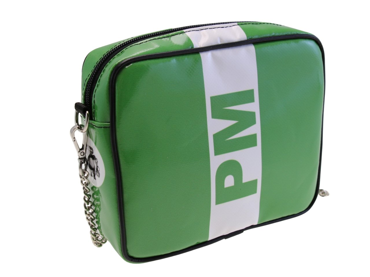 GREEN AND WHITE CLUTCH. MODEL PARK MADE OF LORRY TARPAULIN