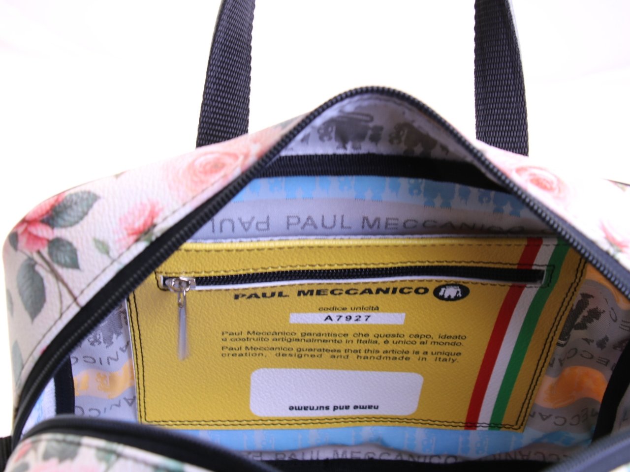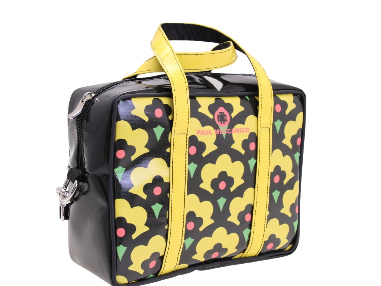 RECTANGULAR WOMEN’S BAG WITH FLORAL FANTASY. MODEL PINCA MADE OF LORRY TARPAULIN.