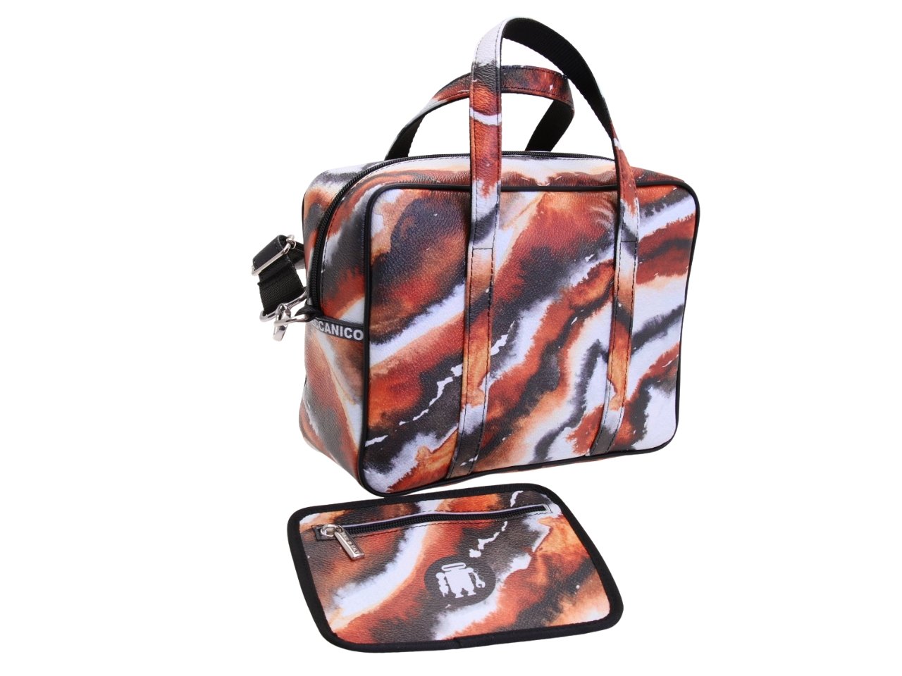RECTANGULAR WOMEN’S BAG WITH ZEBRA PATTERN. MODEL PINCA MADE OF HAMMERED SYNTHETIC LEATHER.