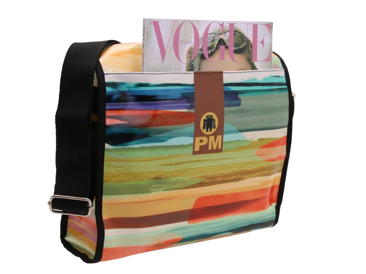 MULTICOLOR CROSSBODY BAG WITH SHADED EFFECT. MODEL BREAK MADE OF LORRY TARPAULIN.