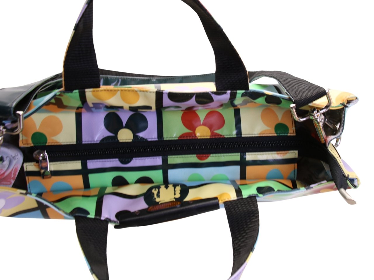 MULTICOLOR MAXI TOTE BAG WITH FLORAL FANTASY. MODEL AIRSTONE MADE OF LORRY TARPAULIN