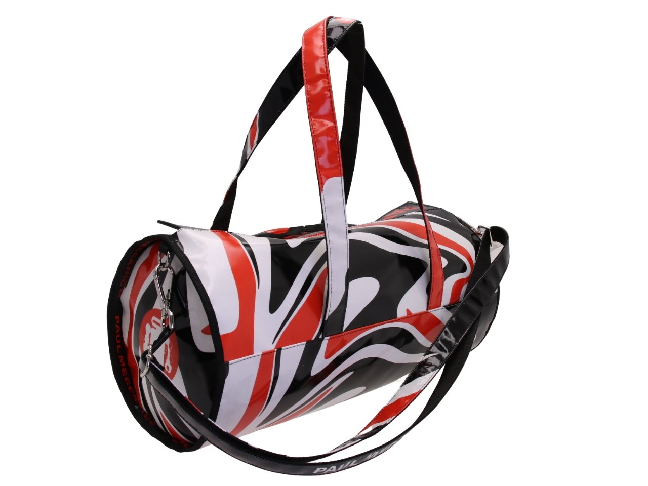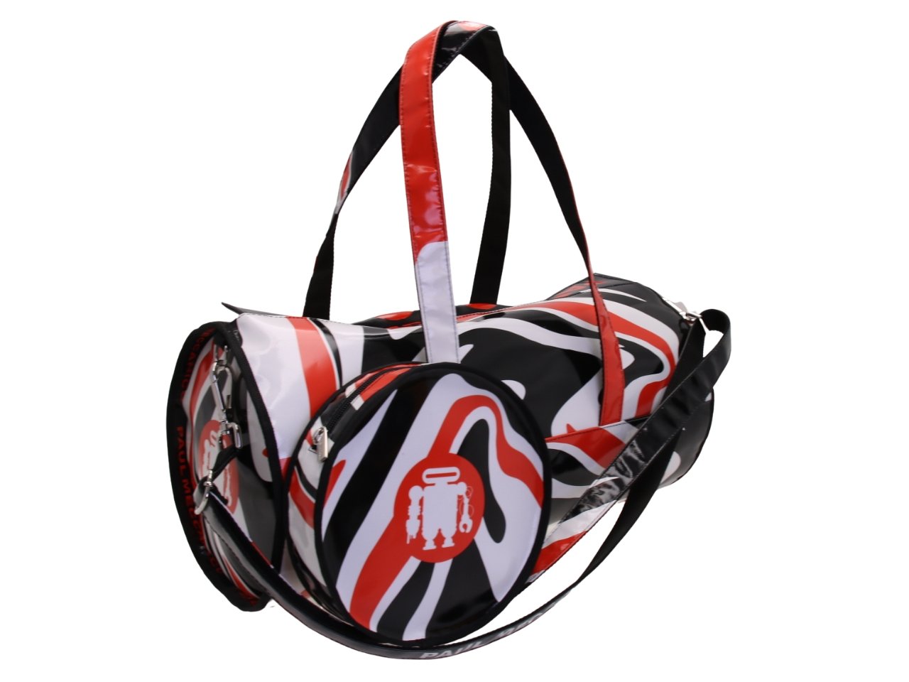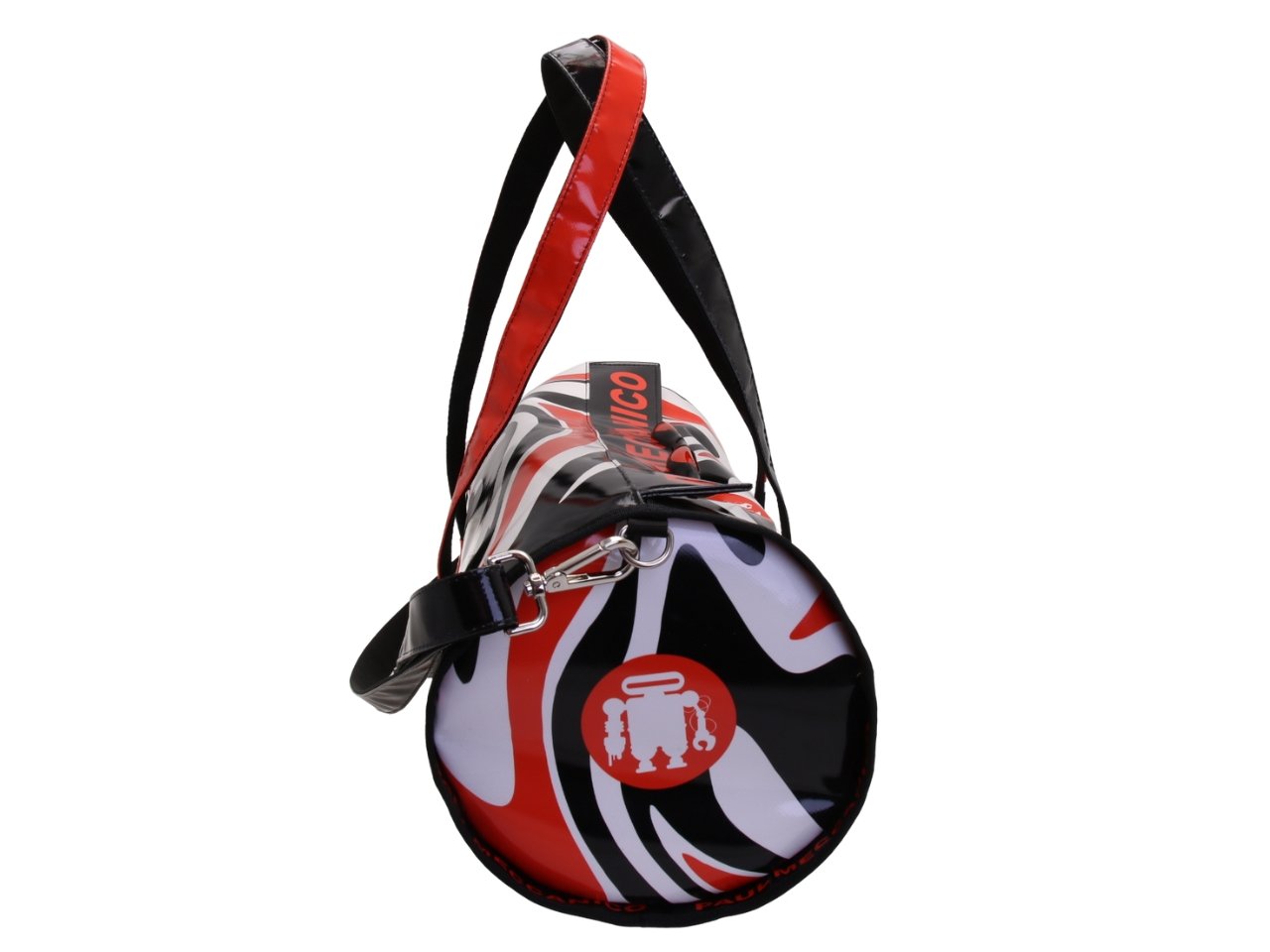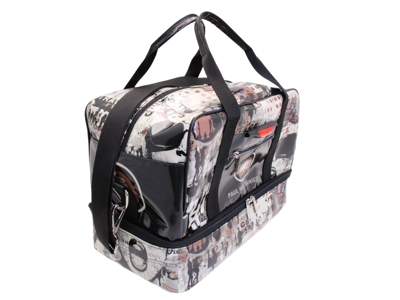 BLACK AND BEIGE HAND LUGGAGE BAG WITH “GRAFFITI STYLE” 40 X 20 X 25 CM. MODEL FLYME MADE OF LORRY TARPAULIN.