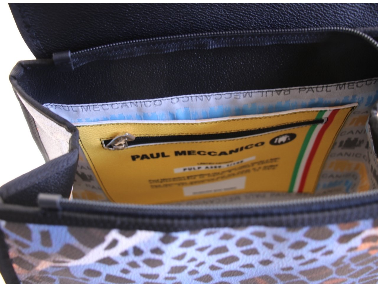 …CRESCENT BAG LIGHT BLUE COLOUR WITH ANIMALIER FANTASY. MODEL SPLIT MADE OF LORRY TARPAULIN.