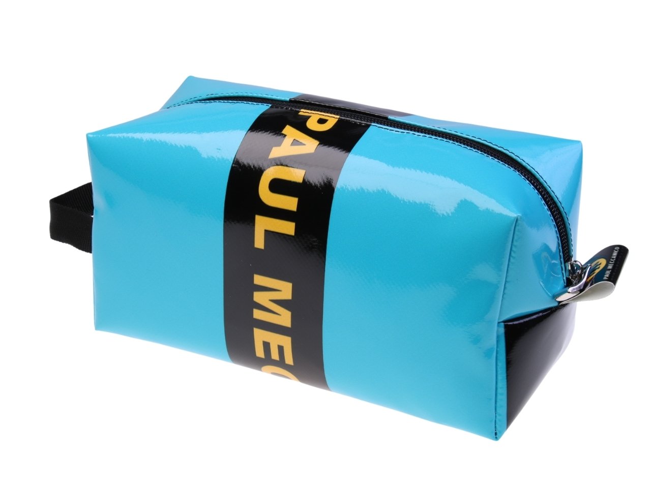 The Paul Meccanico VAN Case is a stylish and practical beauty case featuring an original patterned design. Crafted from durable, water-repellent truck tarpaulin, it's a spacious and easy-to-clean travel companion. Its waterproof material makes it ideal for transporting bottles, even if minor leaks occur.